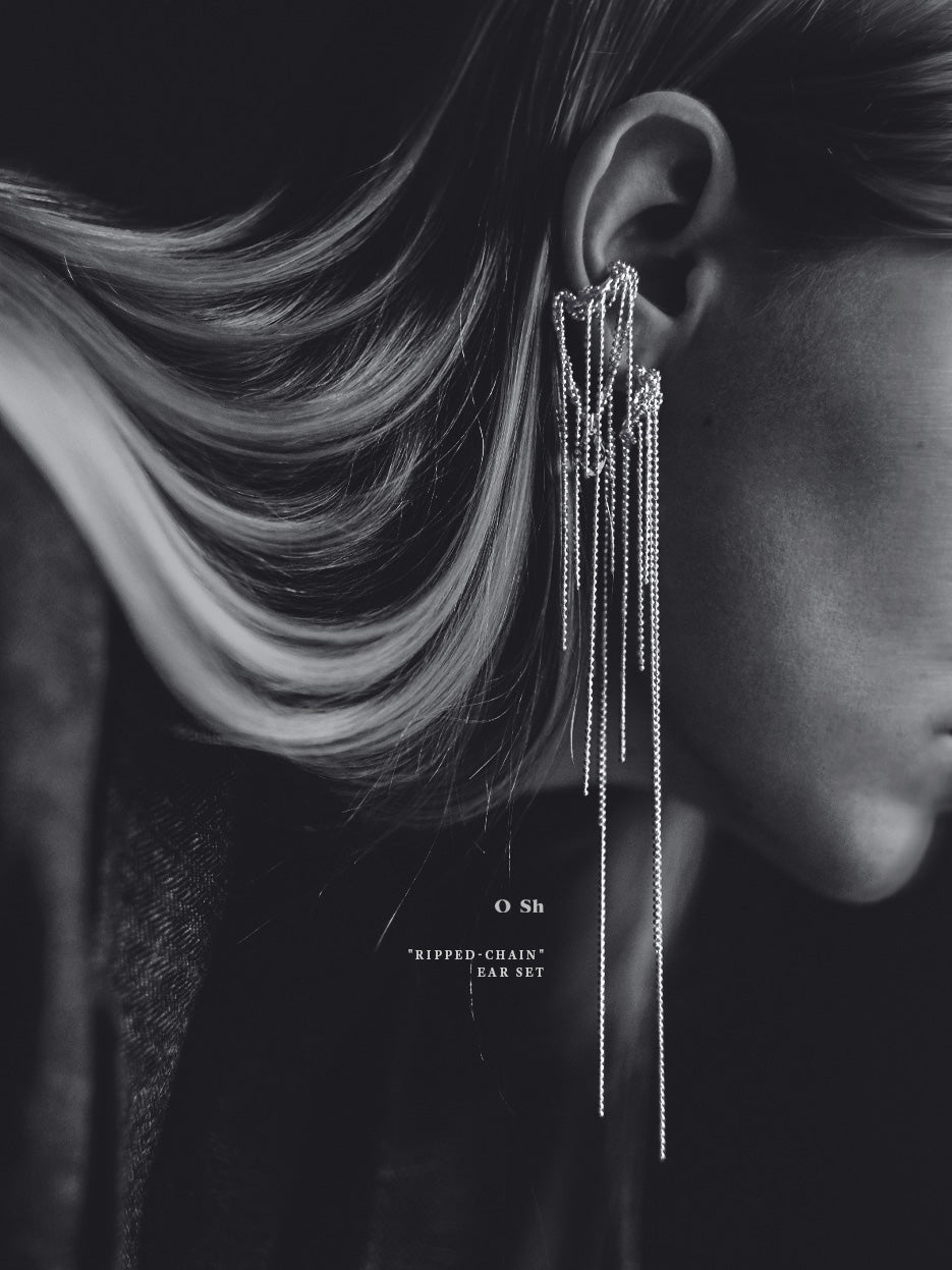 "RIPPED-CHAIN" EAR SET SILVER