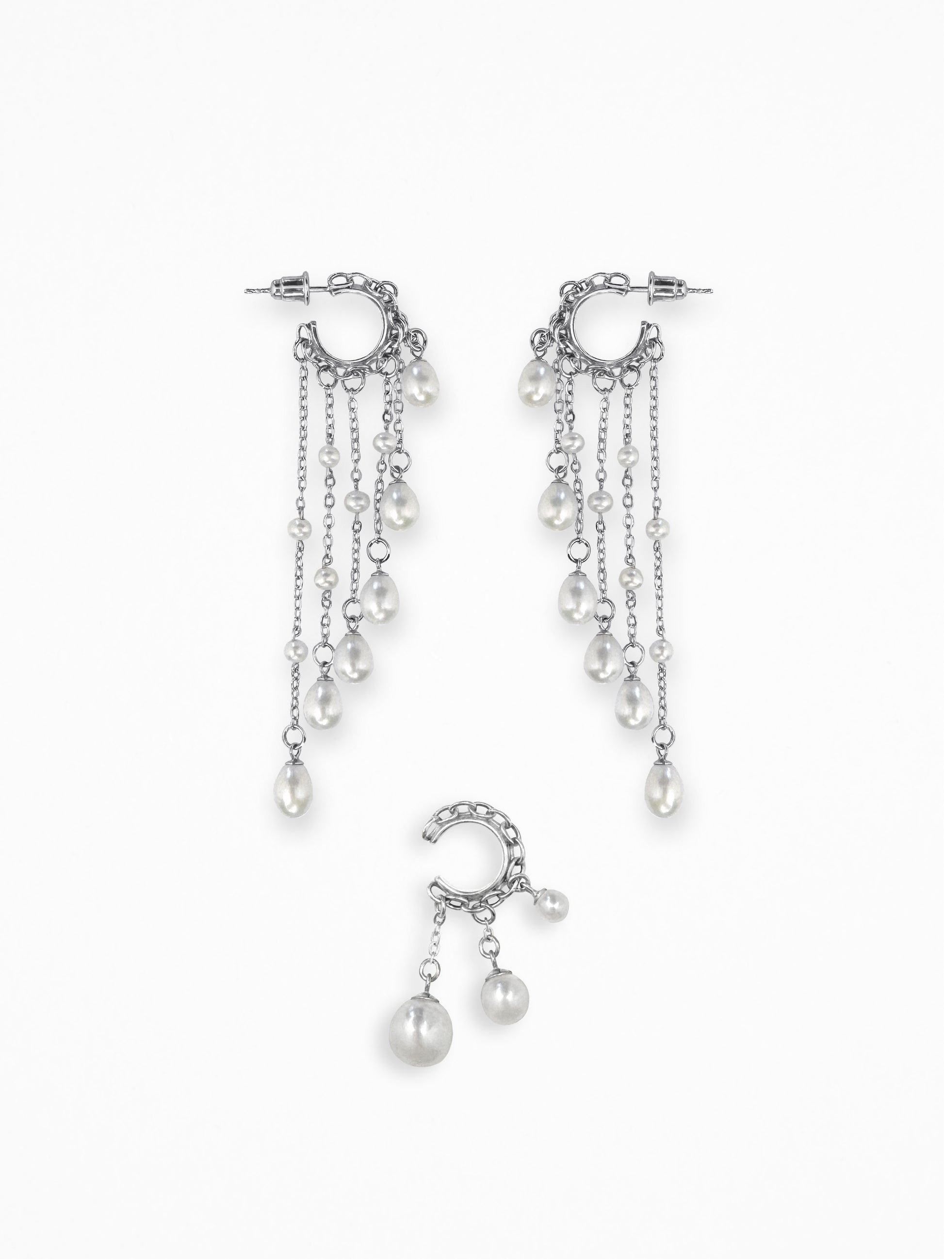 Silver ear set with pearls.