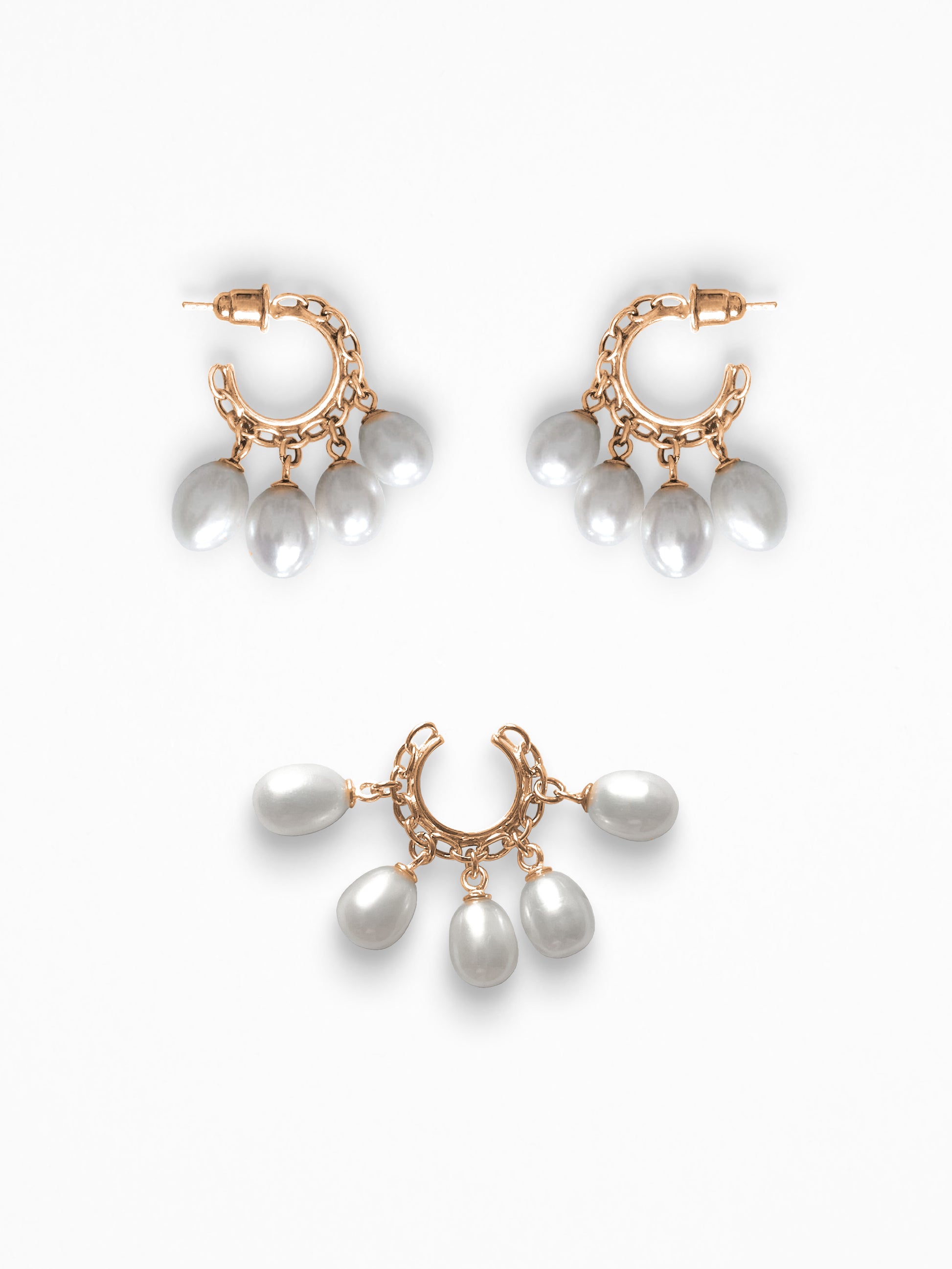 Vermeil ear set with pearls.