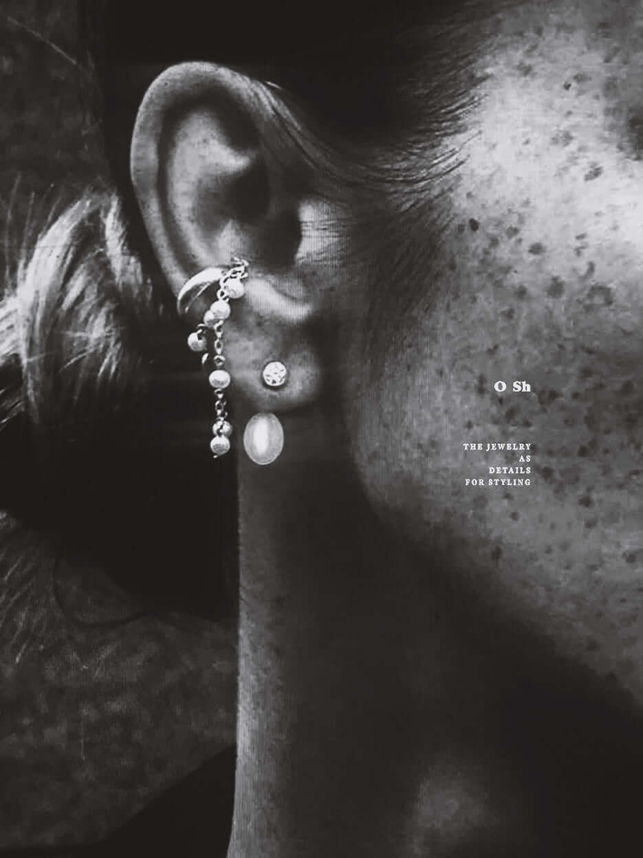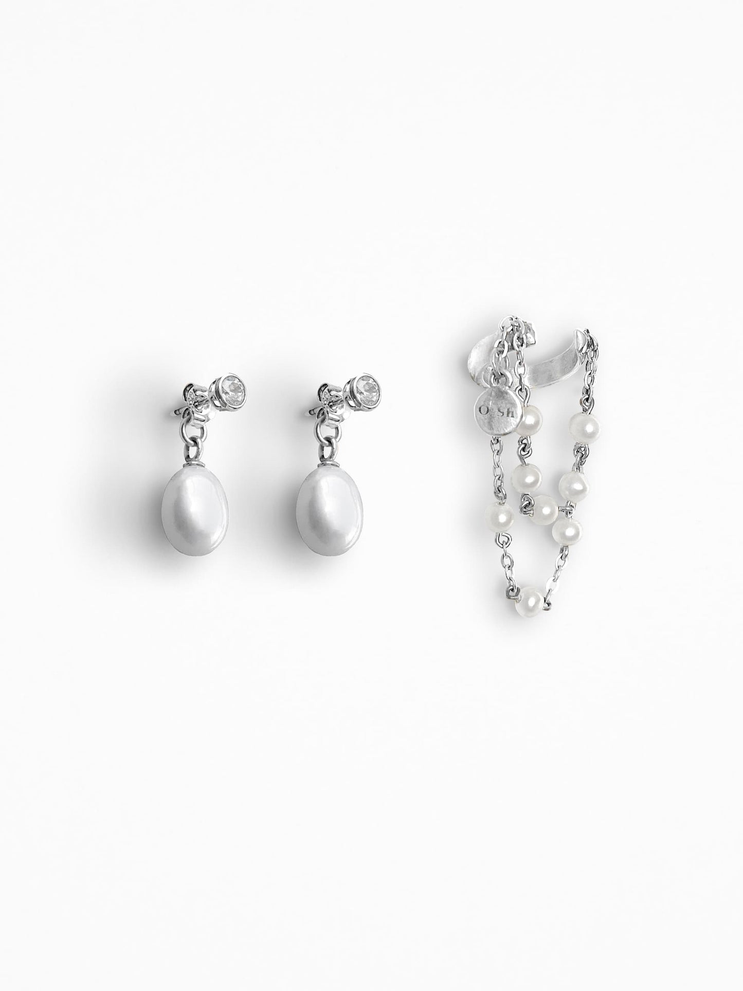 Silver ear set: "MOONLIT DROPLETS" Earrings + "UU FRINGE" Ear Cuff