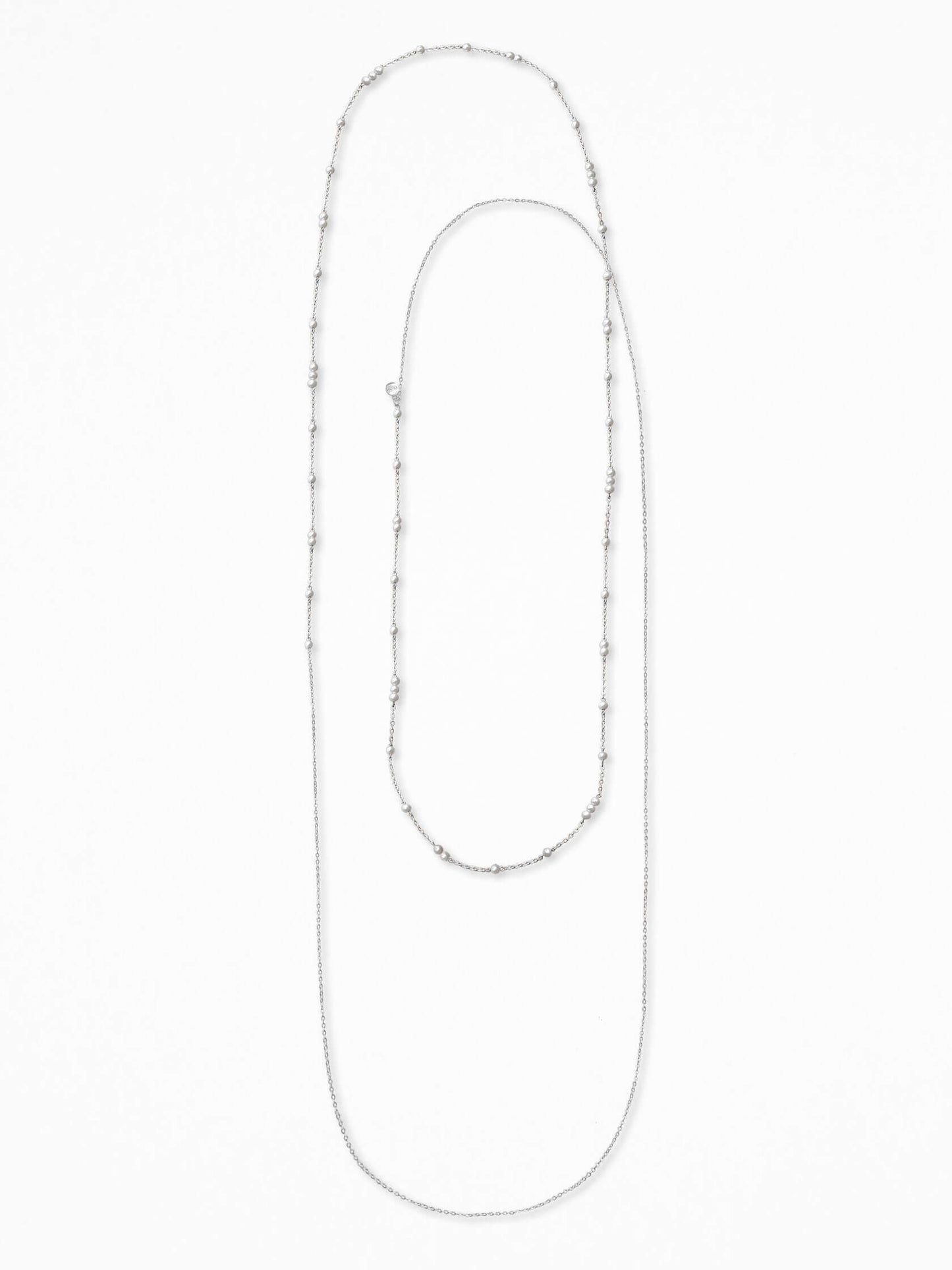 Silver body chain. A long closed thread made of silver chain with a freshwater pearl.
