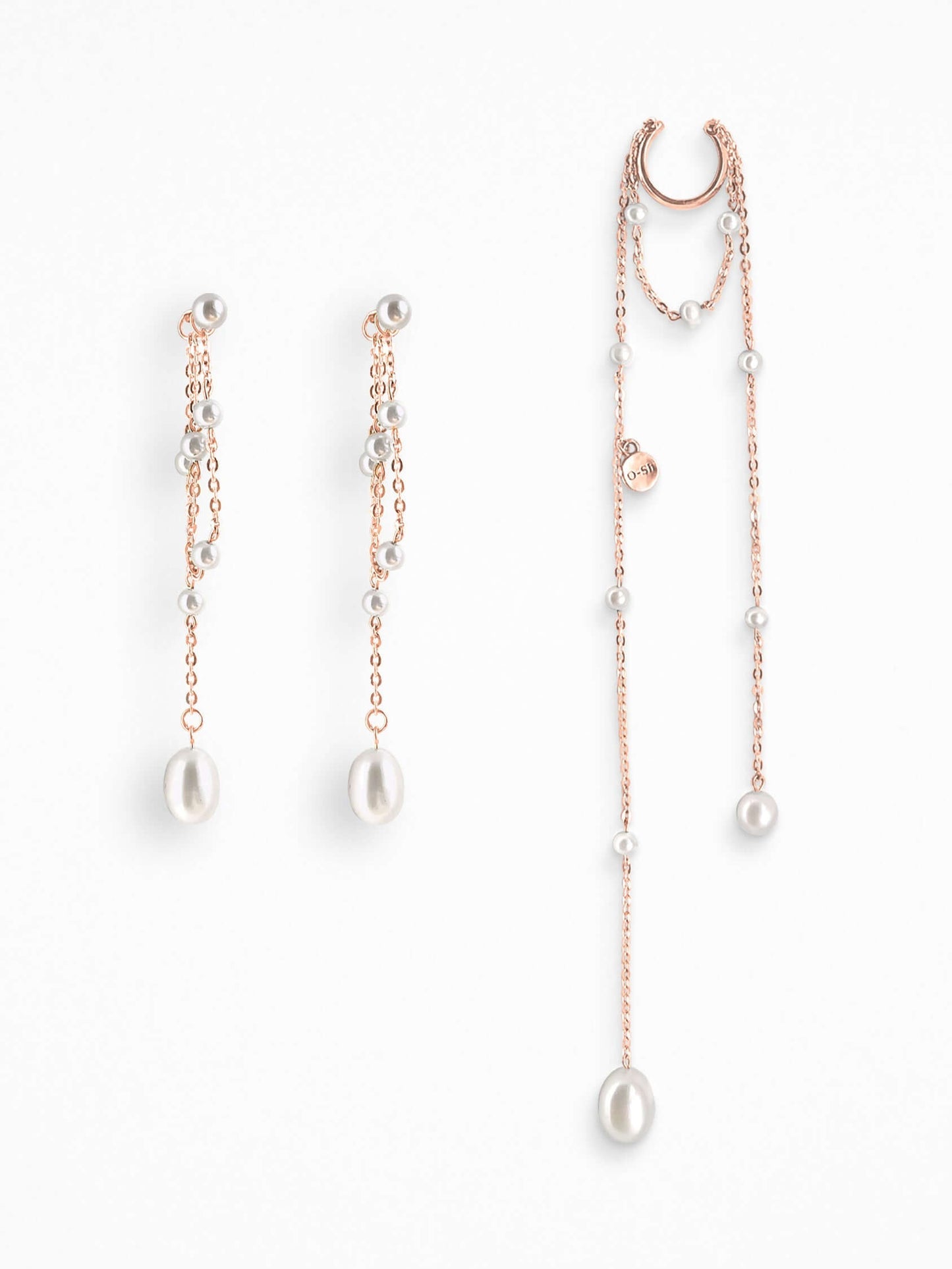 A SET WITH A CUFF AND EARRINGS THAT CAN BE WORN IN MULTIPLE WAYS: AS LONG EARRINGS, FOLDED INTO A Y-SHAPE, OR ASYMMETRICALLY. THE SEPARATE STUD EARRINGS ALLOW FOR ADDITIONAL STYLING OPTIONS.