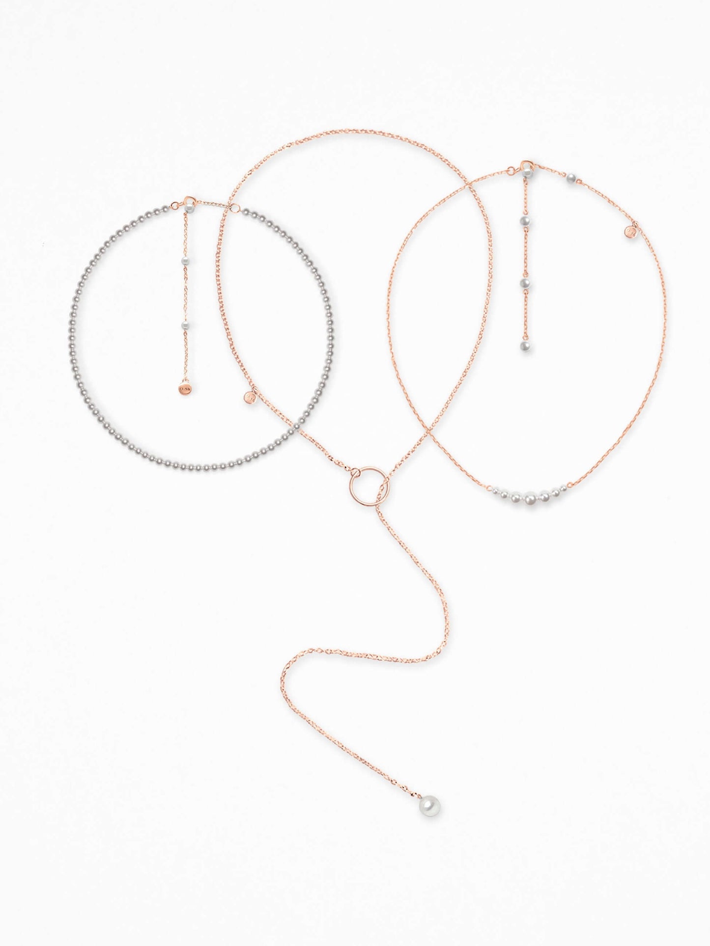 A set of three necklaces made of Vermeil (925 silver coated with yellow gold) and freshwater pearls.
