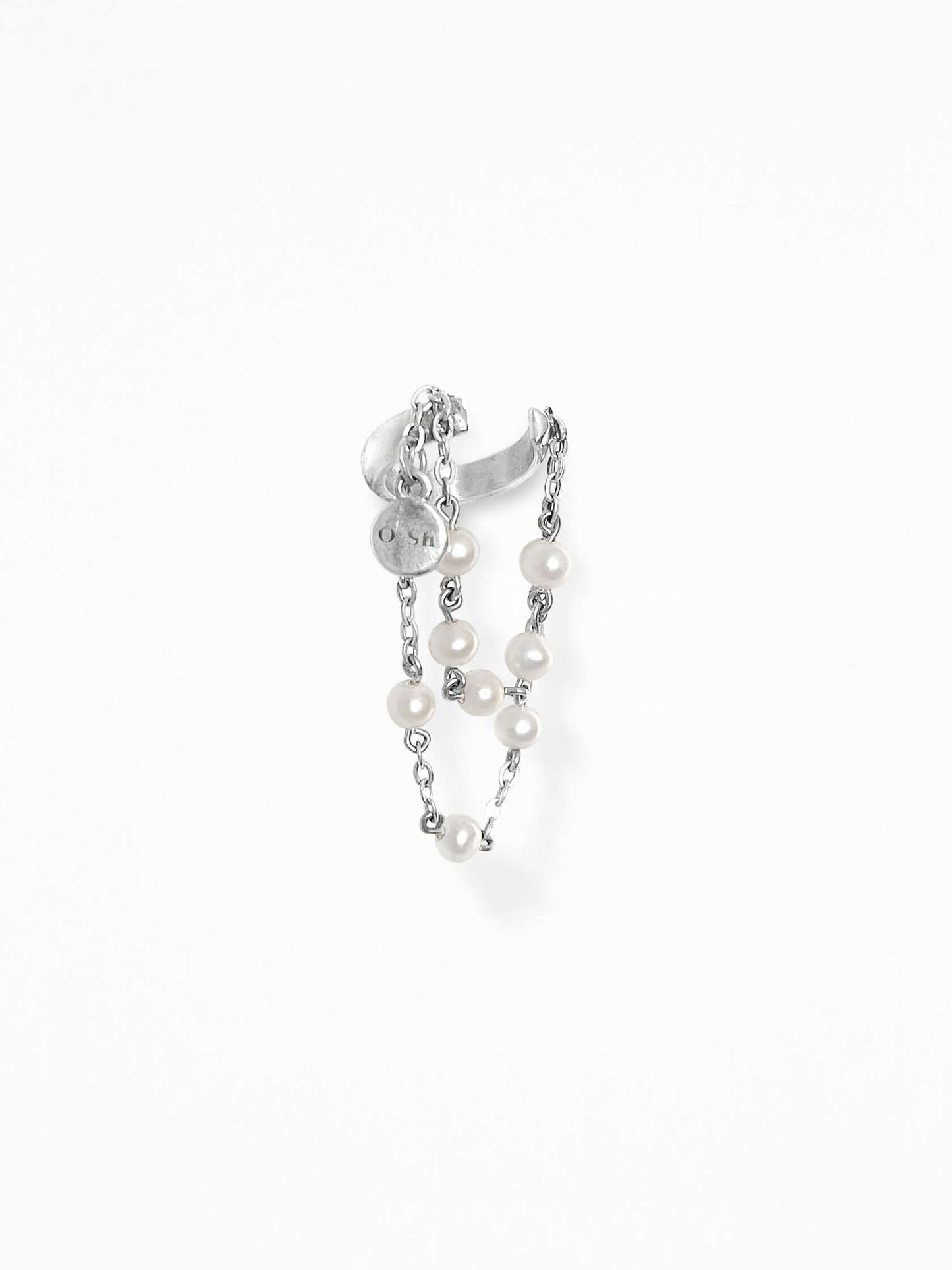 Silver ear cuff with freshwater pearl as a versatile ear detail for any outfit.
